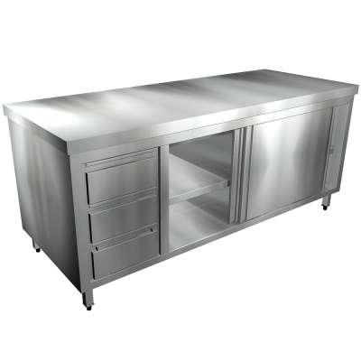 Edelstahl Arbeitsschrank mit Schubladenblock und Türen – Profi-Serie