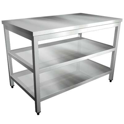 Edelstahl Arbeitstisch mit Boden und Zwischenboden – Profi-Serie