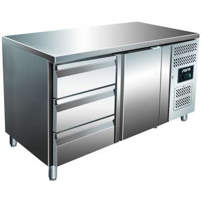 B 1360 x T 700 x H 890 mm, Temperaturbereich: -2°C bis +8°C, 1 Tür, 3 Schubladen Konzipiert für den täglichen Einsatz in Gastronomie und Gewerbe, vereint dieses Produkt robuste Verarbeitung, moderne Technologie und praxisorientiertes Design. Hochwertige Materialien sorgen für Langlebigkeit, während die effiziente Leistung einen reibungslosen Betrieb unterstützt. Eine überzeugende Lösung für Unternehmen, die auf Qualität, Verlässlichkeit und einen professionellen Markenauftritt im internationalen Umfeld setzen.